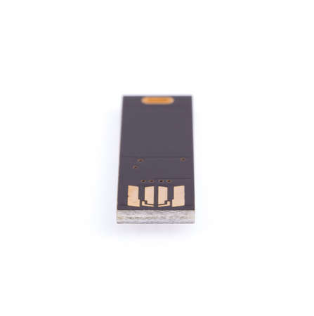 Flash drive disassembled without a plastic case on a white background. Circuit board inside usb drive. Mogilev. Belarus June, 2 2021.
