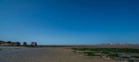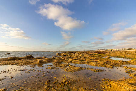 Cloundscape Atlantic Ocean view at Dar Bouazza rocky beach, in Casablanca south coast. Morocco.