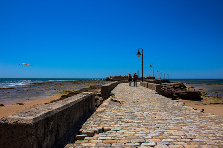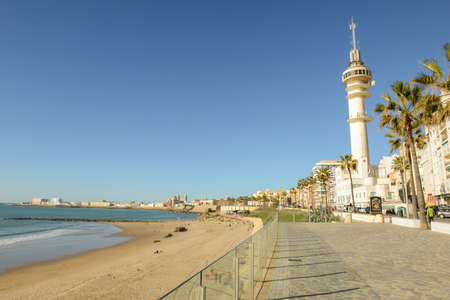 The waterfront of Cadiz city in Spain with a view of the boardwalk along the sea in Sunny day.