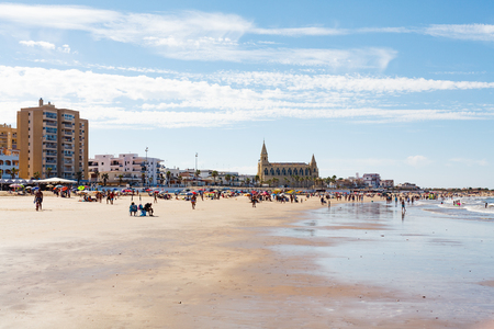Central beach in Chipiona on a sunny summer day