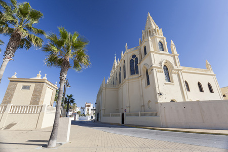 CHIPIONA,SPAIN-NOVEMBER 15,2016: Sanctuary of Nuestra Senora de la Regla, maritime promenade of Chipiona, Andalucia.