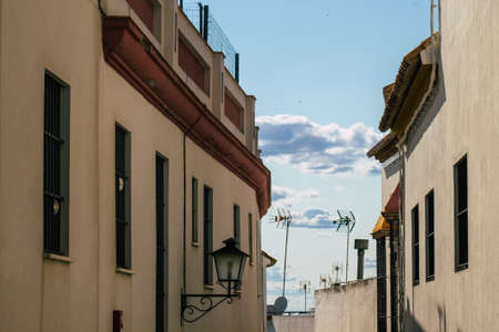 Tavira, Portugal - April 30, 2018: Typical house architecture detail in the historic city center on a spring day