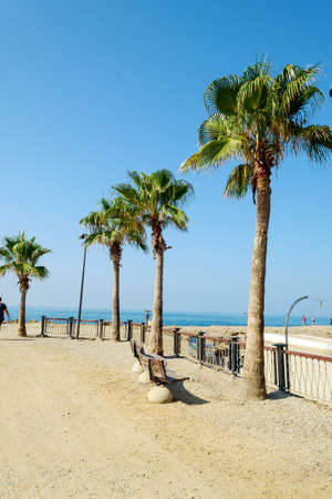 scenery. the sea is completely calm and the promenade with palm trees. very beautiful