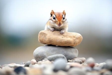 gerbil perched on a stack of flat stones