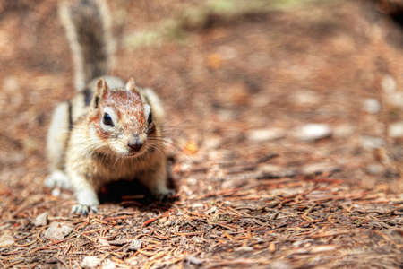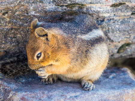 Golden Mantled ground squirrel at Banff National Park with copy space. The ground squirrel is a common sighting in the Canadian Rockies.