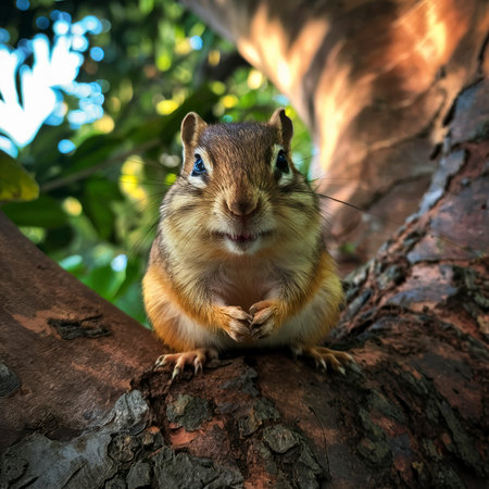 Chipmunk sitting on a tree trunk