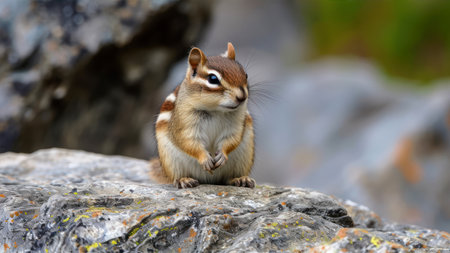 Chipmunk sitting on a rock in Glacier National Park, Montana