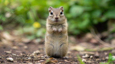 Ground Squirrel Stands On Hind Legs And Stares At Camera with copy space