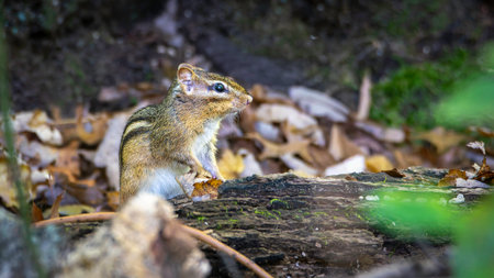 A Curious chipmunk Perched on a Mossy Log in the Forest