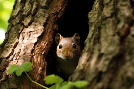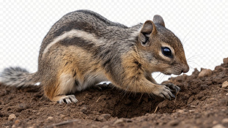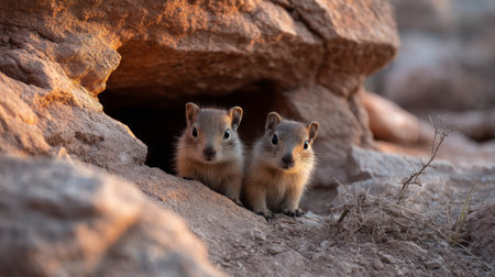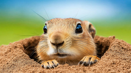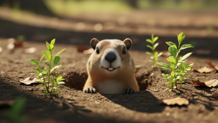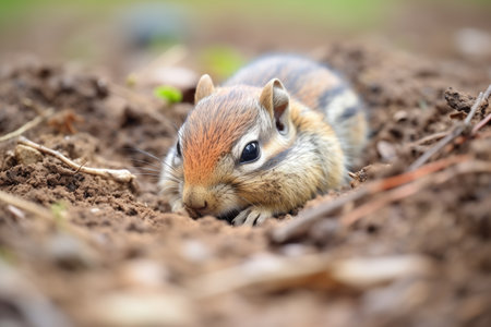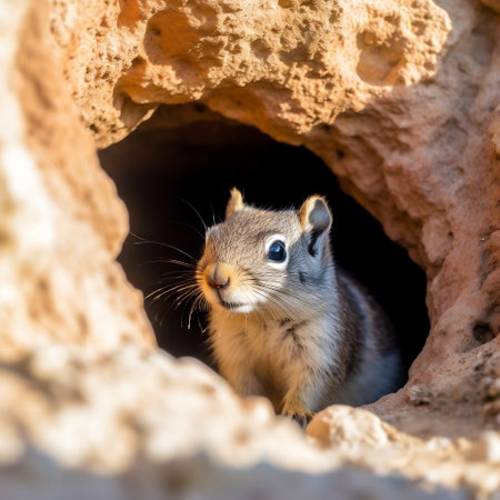 A curious rodent emerges from its burrow, exhibiting a sense of wonder amidst the earthy tones of nature. This enchanting scene captures wildlife in its natural habitat, showcasing the intricate details of the animal's face and surroundings.