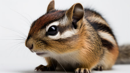 Close up of a chipmunk isolated on a white background.