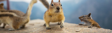 Golden Mantled ground squirrel at Banff National Park with copy space. The ground squirrel is a common sighting in the Canadian Rockies.