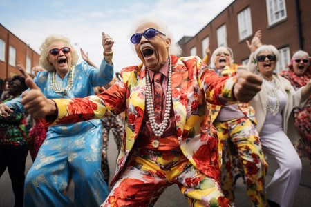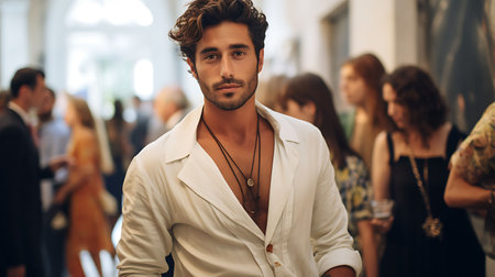Group of charming party makers celebrating joyfully at a stylish event in an elegant venue during evening hours with vibrant expressions and fashionably chic attire