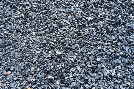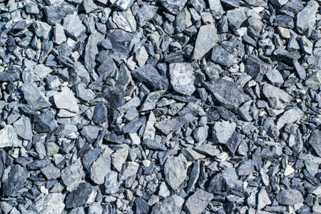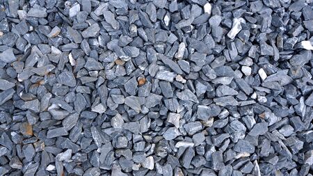 Close up top view texture background wallpaper of grey sharp pebbles stones arranged together on the ground
