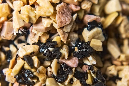 Detailed close up of texture pattern with brown black little stones and rocks. Abstract background concept.
