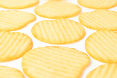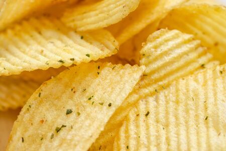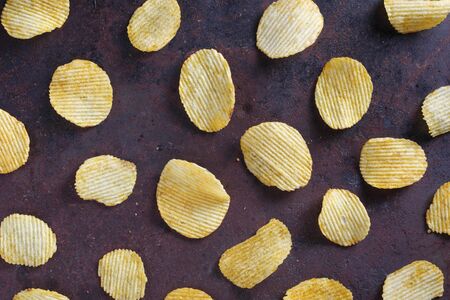 Corrugated Potato Chips. Food background. Top view