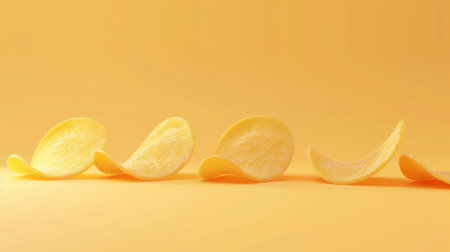 AI Generated. Crispy Potato Chips Arranged on Yellow Surface