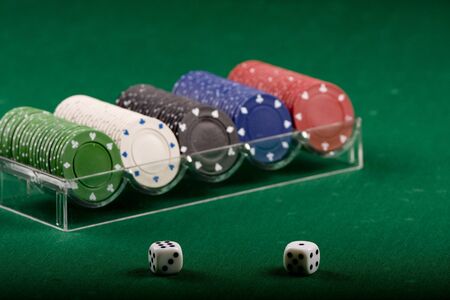Dice ,Poker Chips Multicolor with a green background