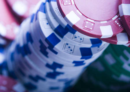 Casino gambling chips - poker background. Red and blue chips
