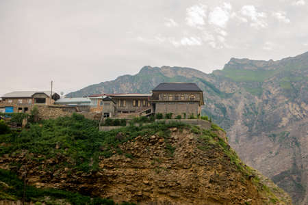 Dagestan, Russia, aul Gamsutl fortress in the old town, old stone landmark, fortification building landscape