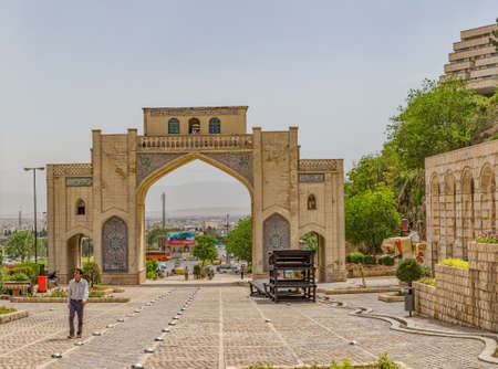SHIRAZ, IRAN - MAY 3, 2015: People walking around the Qur'an Gate. Travelers passing underneath the gates were believed to receive the blessing of the Holy Book as they began their journey.