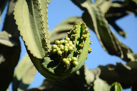 Candelabra cactus, a species of cactus endemic to the Galapagos Islands. Tropical plants in the Utopia Park. Bahan, Israel.