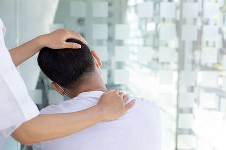 Physiotherapist working on massaging a patient in the neck. Concept of physiotherapy and rehabilitation
