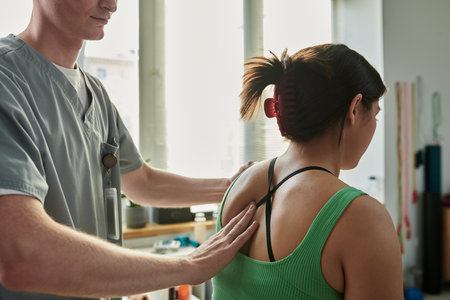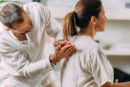 physiotherapist doing back massage to his patient in medical office