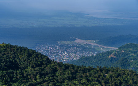 The scenic landscape view of Tansen and Madi Phat, Palpa from the Shreenagar Hill of Tansen, Palpa, Nepal