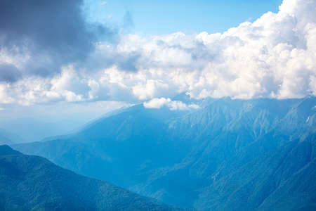 Caucasus mountains in the clouds in summer. Nature