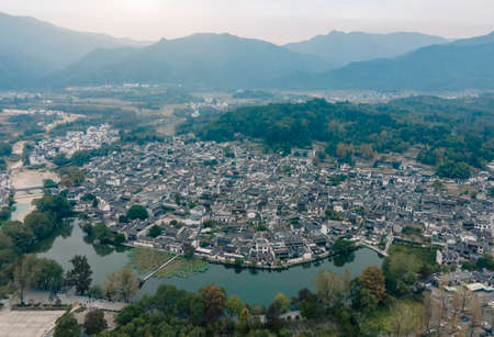 Aerial photography of old houses in ancient villages in Huizhou, Huangshan
