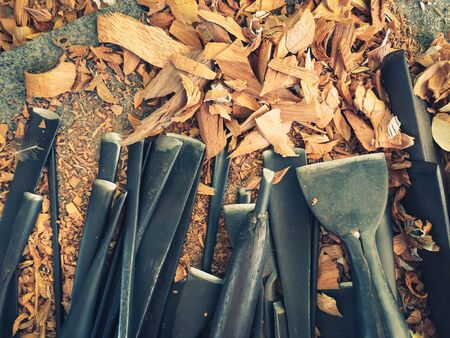 Woodworking Chisels and Shavings for Craftsmanship and Slow Craft Concept