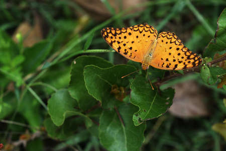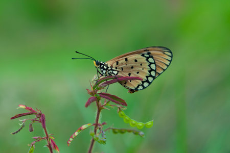 An Orange Butterfly Acraea terpsicore perched in branch of the tree