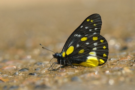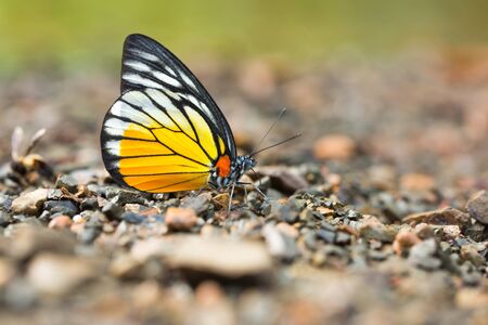 Close-up of beautiful butterfly /Red-spot Saw tooth butterfly ( Prioneris philonome ) resting on the ground