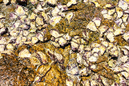 full frame detail of a coastal rock formation with lots of Sessilia in Brittany, France