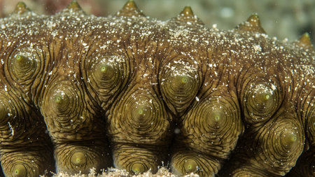 Close up sea cucumber dried dermal papillae sandy wallpaper background representing marine texture detail suitable for coastal natural design