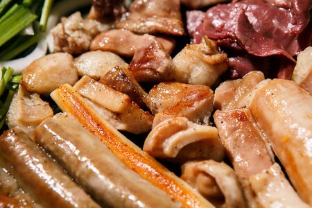 grilled intestine and grilled pork