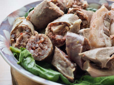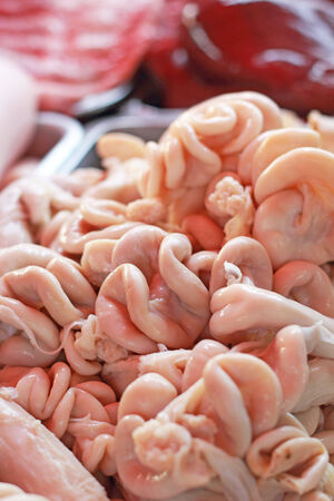 Ingredient of intestine pig closeup