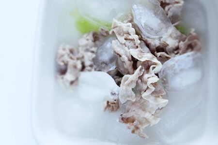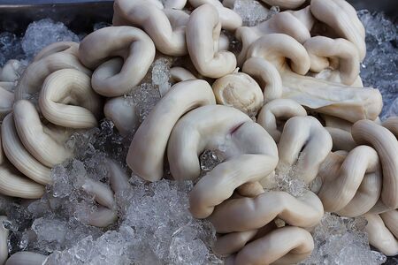 Chitterlings frozen ice in fresh market