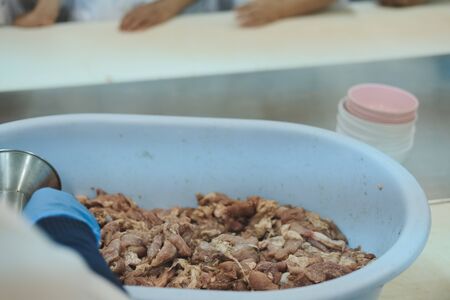 Mixed animal offal, boiled with spices, ready to cook for customers who need it urgently.