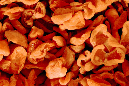 Background of dried apricots. Tangerine peel texture.