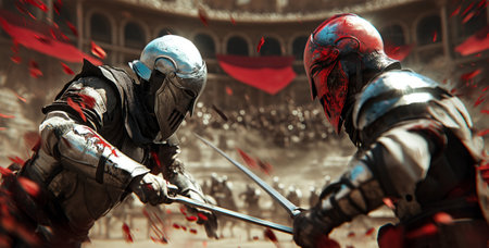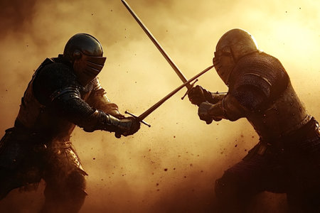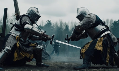 A thrilling knightly battle of swords and duels Creating using generative AI tools