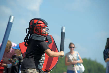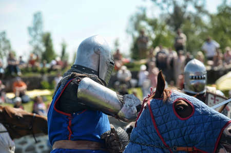 MINSK, BELARUS - JULY 19, 2014: Historical restoration of knightly fights on festival of medieval culture