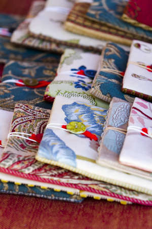 Close-up of kimono material for sale in a market in Kyoto city, Japan