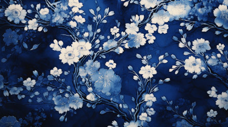texture of print fabric striped flowers and leaves on dark blue background for background