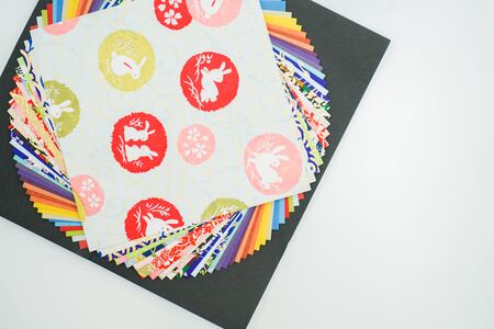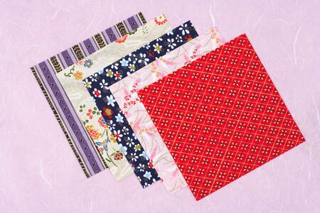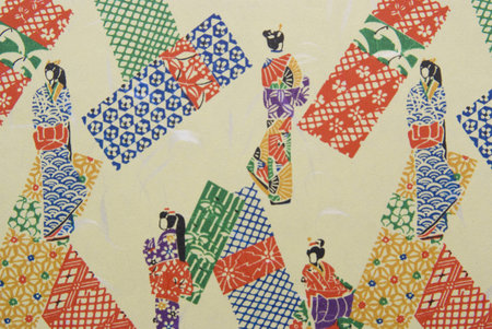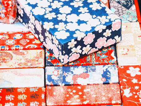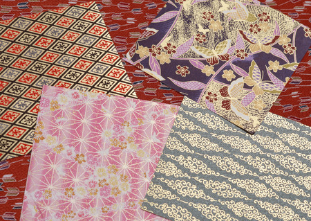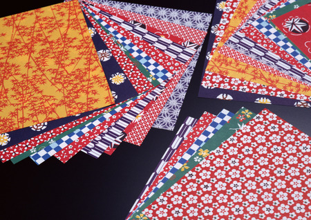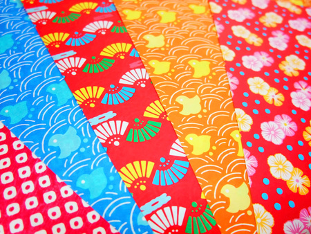 A closeup of the Japanese traditional washi paper with colorful unique decorations