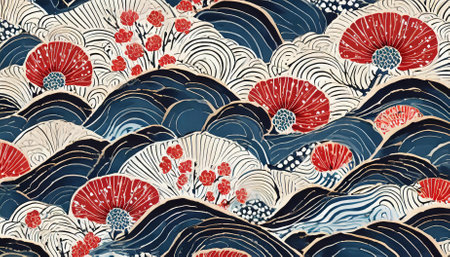 This seamless Japanese wave design features intricately oriental patterns, combining traditional artistry with modern elegance. Ideal for backgrounds, textiles, wallpapers, and creative graphics