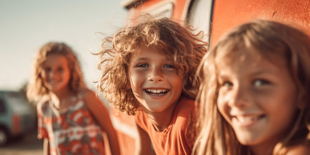 Happy children during summer enjoy their time at a camping site, surrounded by nature's beauty. They engage in outdoor activities, make new friends, and create cherished memories under the clear blue sky. AI Generative AI