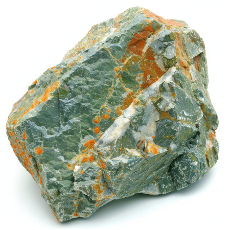 This vibrant rock showcases stunning green and orange colors with intricate patterns, perfect for geology enthusiasts, nature photography, and artistic projects.