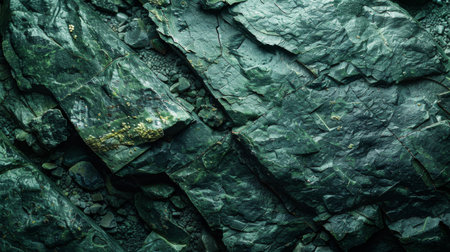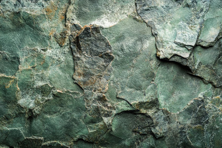 Textured Green Rock Surface Showcasing Layers, Patterns, and Natural Details Found in a Serene Outdoor Location During Midday. Generative AI